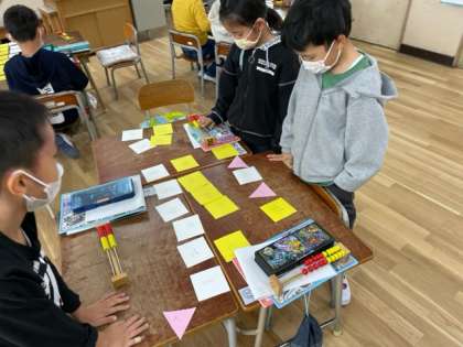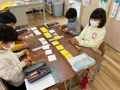 自分たちで画用紙を選び、式を作り、答えをゲーム形式で求めました。各班とても盛り上がっていました。