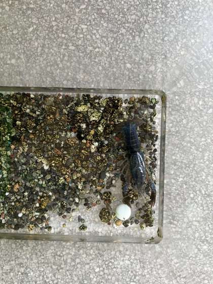 6月ごろから育てているザリガニですが、赤ちゃんも生まれみんなで当番制でお世話をしています。そのうちの1匹が青色に変化していました。それを見た子どもたちも大興奮でした!