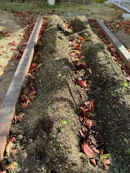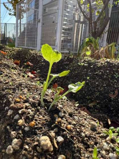 1日参観日に保護者の方が見ている前で一生懸命耕し、みんなで植えた種から芽が出ましたよ!