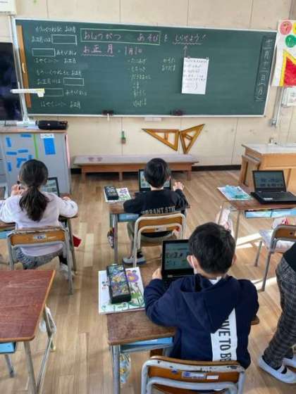 『もういくつねるとお正月』ということで、お正月遊びについてタブレットを使い調べました。