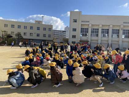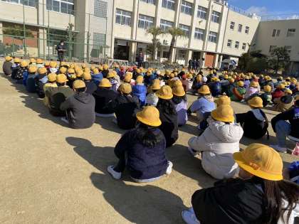 地震があったことを想定して、運動場に避難をしました。すばやく行動することができていました。