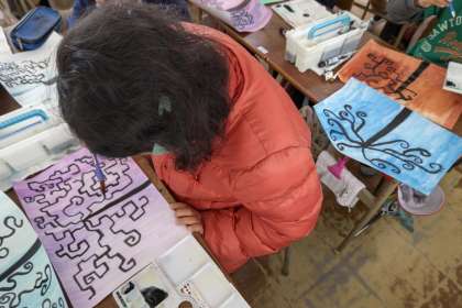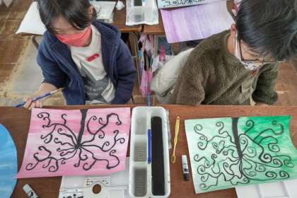 くねくねは、筆先の向きを考えながらうまく動かしていましたが、カクカクに苦戦している人も多かったです。出来上がりが楽しみです。