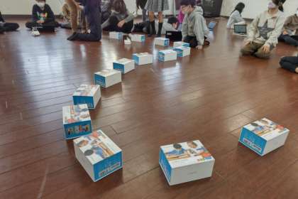 スクラッチを使って、ロボットカーに命令を送り、自分で考えた通りのプログラムを組み、動かしました。