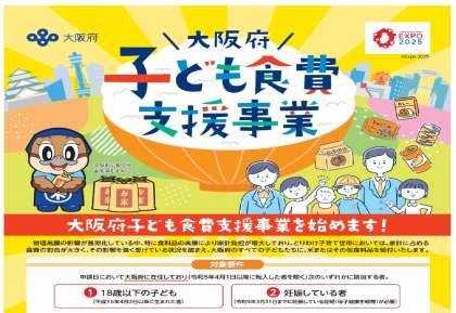 このたび、本府では物価高騰の影響が長期化している中、特に食料品の高騰により家計負担が増大しており、とりわけ子育て世帯においては、家計に占める食費の割合が大きく、その影響を強く受けている状況を踏まえ、大阪府のすべての子どもたちに、米又はその他食料品を給付する「大阪府子ども(子育て世帯)に対する食費支援事業」を新型コロナウイルス感染症対応地方創生臨時交付金を活用し、実施することといたしました 。