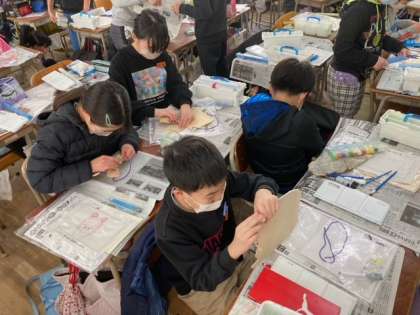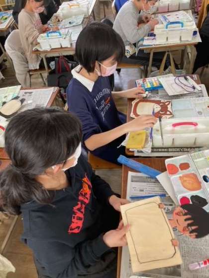 色を塗っています。もうすぐ完成です。家で使ってもらえるような物になるといいですね。