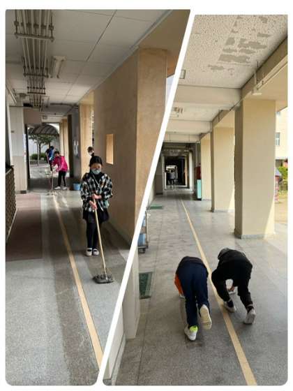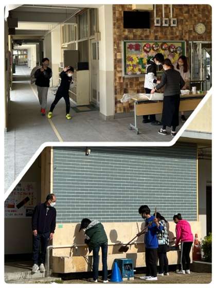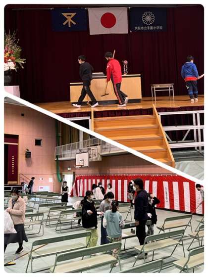 在校生を代表して5年生と教職員が協力し、明日の本番に向けて清掃、準備をしてくれています。