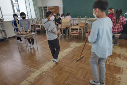 長く使って汚れた雑巾を見て喜ぶ子、友達とキレイになった箇所を見て嬉しそうに話している子、まだまだ!と進んで次の掃除場所を見つけている子、友達の机を運ぶときに自然に手伝える子、どの子もほんとに立派です!