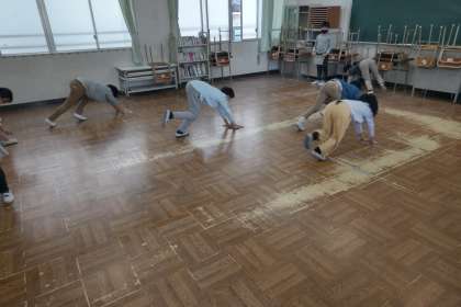 楽しみながら教室も横の荷物を置いている教室もピカピカにできました。