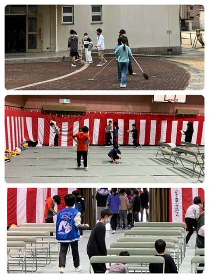 9時に新2年生、6年生が登校し、入学式の準備をしています。