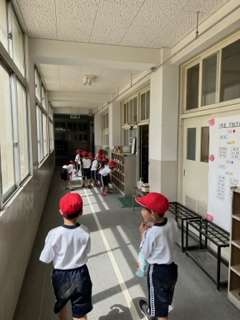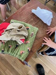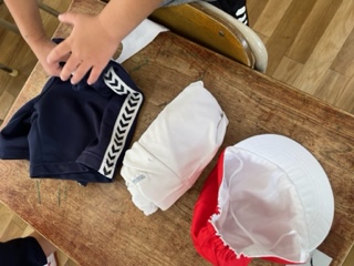 着替えたあとに体操服を片付けています。