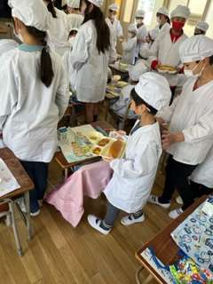 来週の給食参観では、1年生が自分たちでできるように金曜日まで支援していきます。