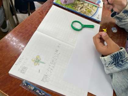 5年生の理科、最初の学習は花のつくりです。アブラナの花がどんなつくりになっているか、実はどこからできるのかを考えました。