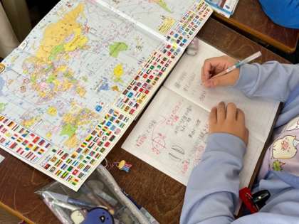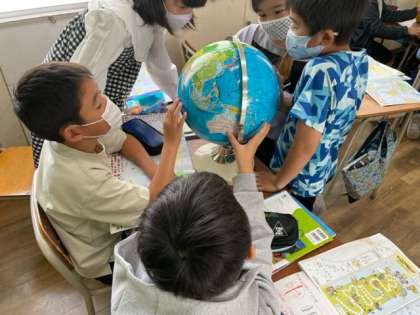 今日は地球儀や地図を使って学習していました。