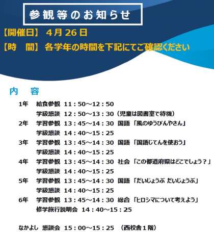 4月26日(水)参観・懇談会について