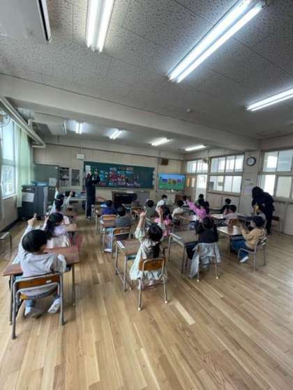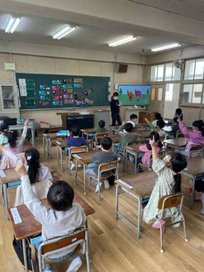 英語のモジュール学習では、動画教材を使って、英語の曲を身振り手振りをつけながらみんなで楽しく歌いました!