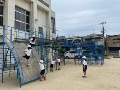 体育科では、遊具を使ったサーキットトレーニングをしています。