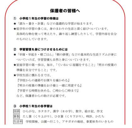 懇談会にて各担任からのアナウンスがあったと思いますが、各学年別に家庭学習へ向けての資料をHPに掲載しております。ゴールデンウイークの5連休中にご一読いただき、ご家庭での学習にお役立てください。
