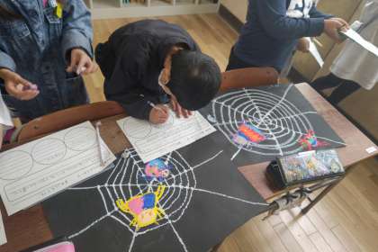 図工科「クモの巣鑑賞会」(2年生)