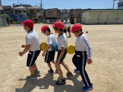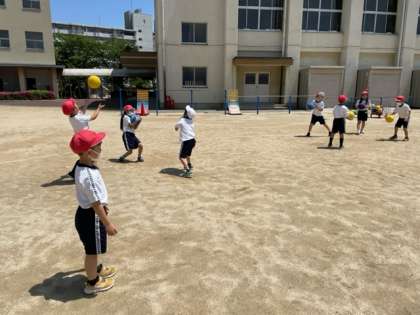 体育科では、ボールを使っていろんな動きをしました。