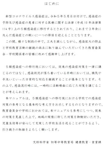 5類移行後の学校における新型コロナウイルス対策について(抜粋)