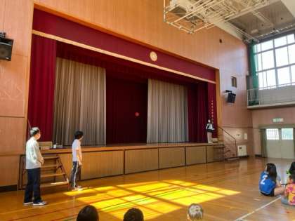 児童朝会で物当てゲームをしました。