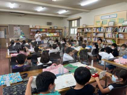 1.2年生合同で23日の遠足についてのお話を聞きました。どんなことに気をつけるのか、約束事など確かめています。遠足が楽しみですね。
