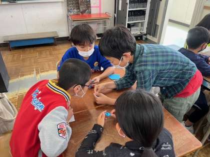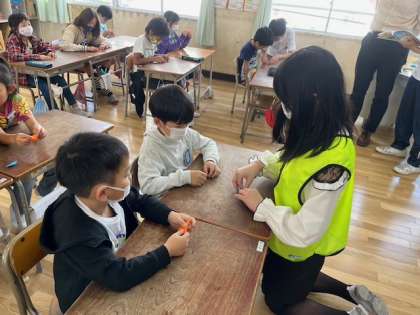 折ることに苦労している子たちには、6年生が一生懸命教えている姿が見られました。