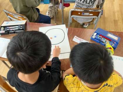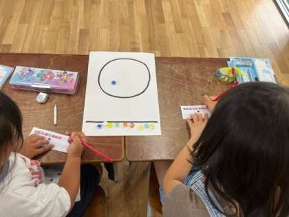 おはじきを使ってゲームをした後に、10はいくつといくつに分けられるのか考えました。