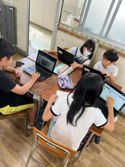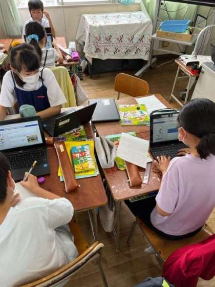 10日の授業参観では、保護者向けに林間についてのプレゼン活動をするため、班別に作成しています。