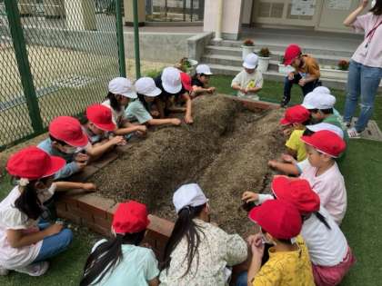 その後は、ひまわりとおくらの雑草を抜くと、花壇がスッキリしました。