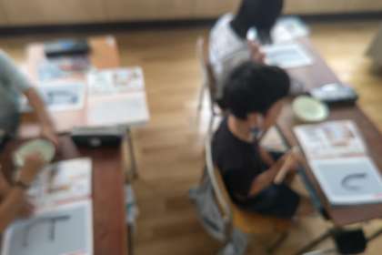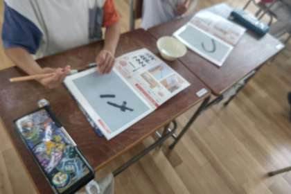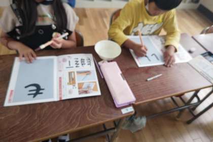 書写の時間では、よい姿勢で正しく文字を書くことをめあてに頑張っています。
