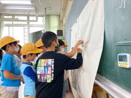 学級活動の時間を使い、学級旗をみんなで作成しました。