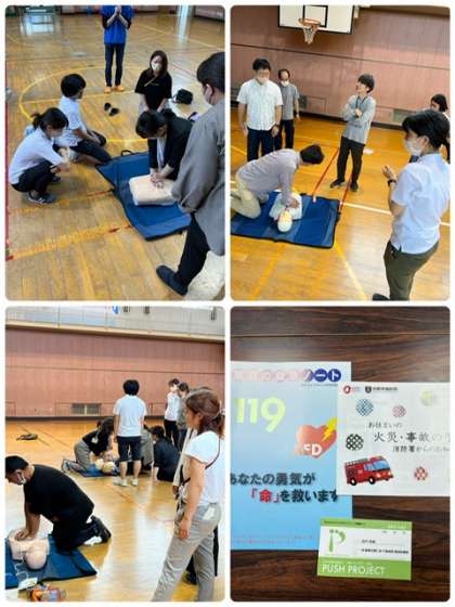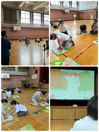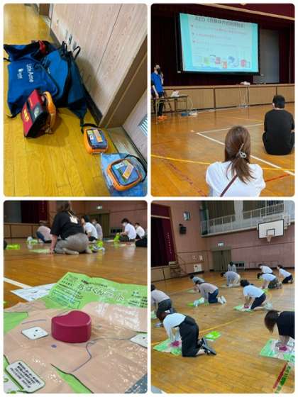 校時を5限までとし、救急救命講習会を2h実施しました。今回は消防隊ではなく千船病院の救急診療部で勤務されてるドクターに講師をお願いしました。