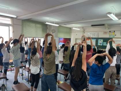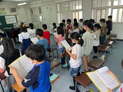 先週は、大雨で急な下校のため、久しぶりの音楽授業です!楽しく取り組みました!