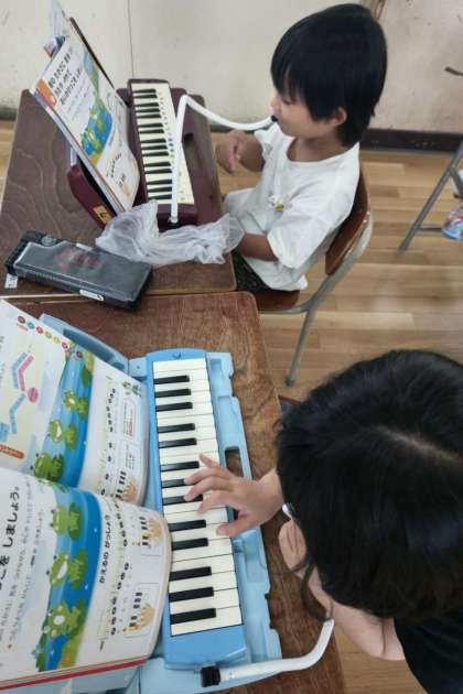 「ドレミの歌」「かっこう」「かえるの歌」と練習を進めていますが、音階やリズムだけでなく、指番号も意識しながらふけるようになってきました。