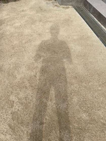 あいにくの曇り空なので、くっきりではないですが、8:00と12:00での影の様子です。