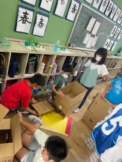 今日はスマイル班活動がありました。どの班も夏祭りに向けて、お店の準備に大忙しでした!