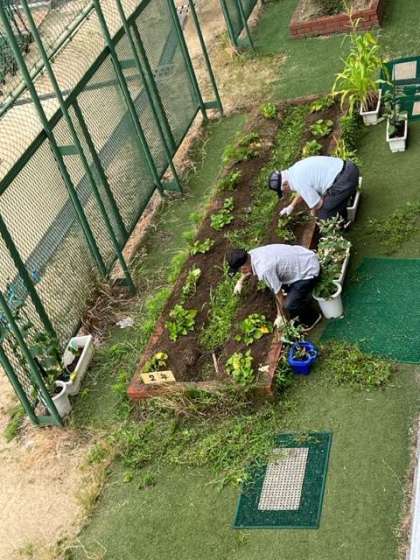 小雨の降る中、地域の方々にご協力いただき、学級園がきれいになり作物も順調に育っております。