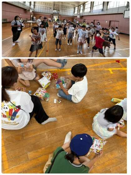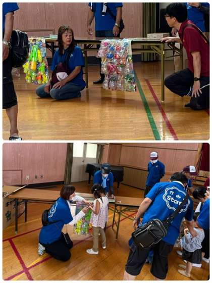 それぞれの作品が完成したので記念撮影と抽選会があり、お菓子や景品をもらって嬉しそうです。やはり、子どもが楽しそうにしている姿からは元気をもらえますね。