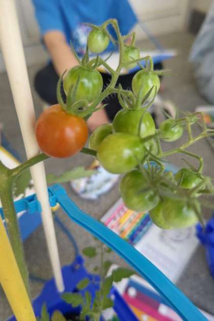 また来週の懇談で、トマトの鉢や支柱ごと持って帰ってもらい、夏休みもトマトのお世話をして、たくさん実らせてほしいと思っています、よろしくお願いします。