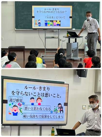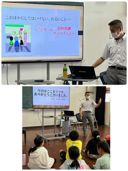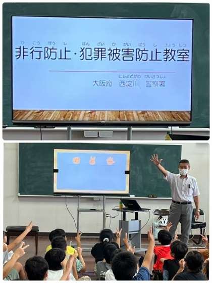 西淀川警察から生活安全課少年係の警部補にご来校いただき、非行防止、犯罪被害防止教室を開催していただきました。
