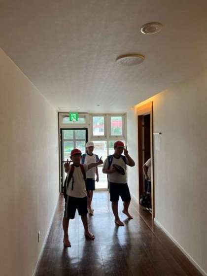入室後に更衣し、今から避難訓練をします。