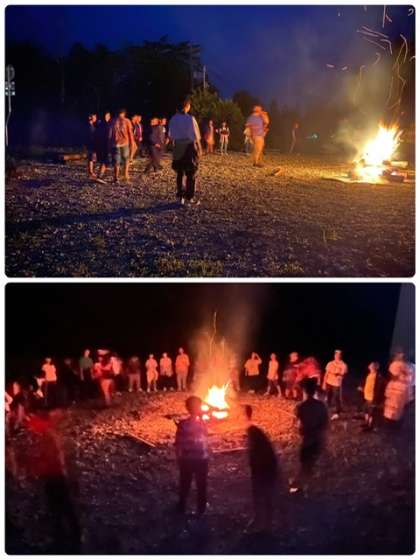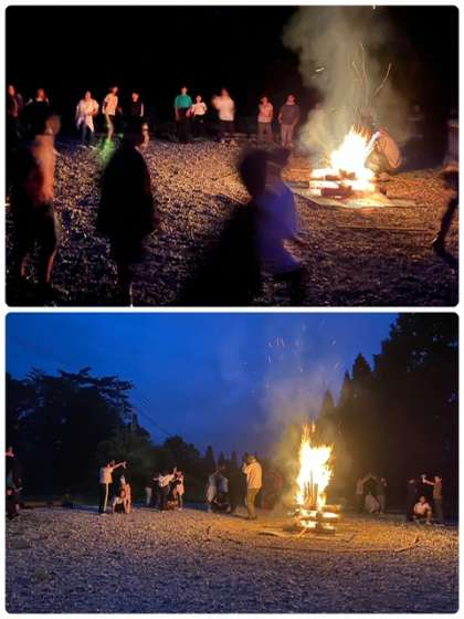 キャンプファイヤー係や先生方からのレクリェーションで楽しんでいます。