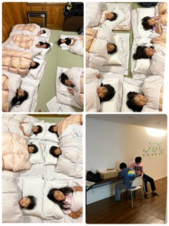 今日の振り返りを確認してもらい、そろそろ就寝準備も完了のようです。