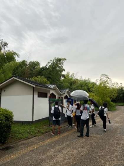 そして、午後からは全校遠足に向けた下見を実施、あいにくの雷雨でしたが、天候の回復を待って歩いて歩いて。