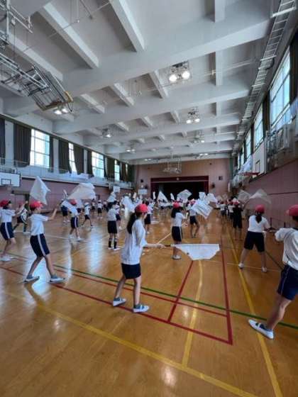 それぞれに演技や競技の練習が始まっています。熱中症に気をつけて意識的に水分を補給しています。