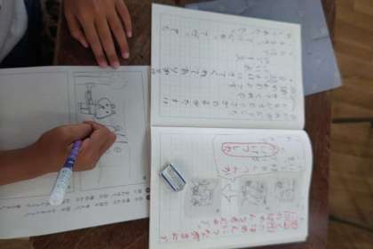 普段から、ノートや連絡帳などで書く学習をたくさんしているので、今回の学習を紹介しただけで、「おもしろそう」「早く書きたい!」と意欲的な子どもたち。