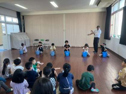 「水にチャポーン、振り洗い〜こすり洗い〜上持って〜半分におって〜もう半分におって〜オッケー!半分にぱったん、下からおる、綱引きギュ〜!この絞り方は縦絞り」と声を出して実践しました。