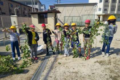 なが〜いつるを観察し、葉を切ったりスコップを使って土をほったりしました。