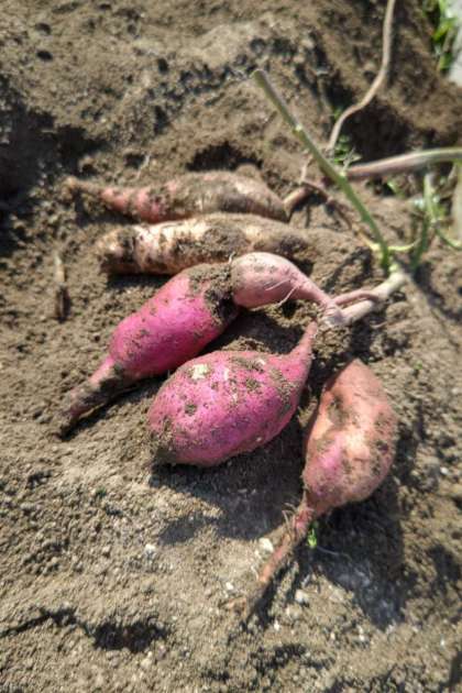 春に、苗から育てていたサツマイモを収穫しました。